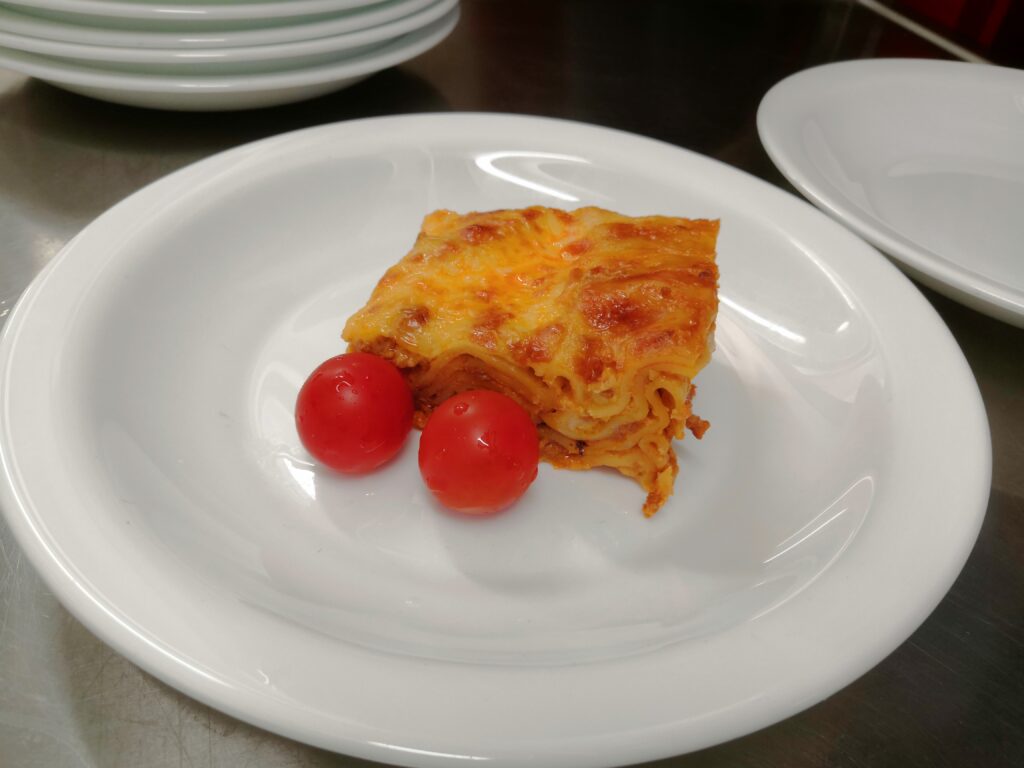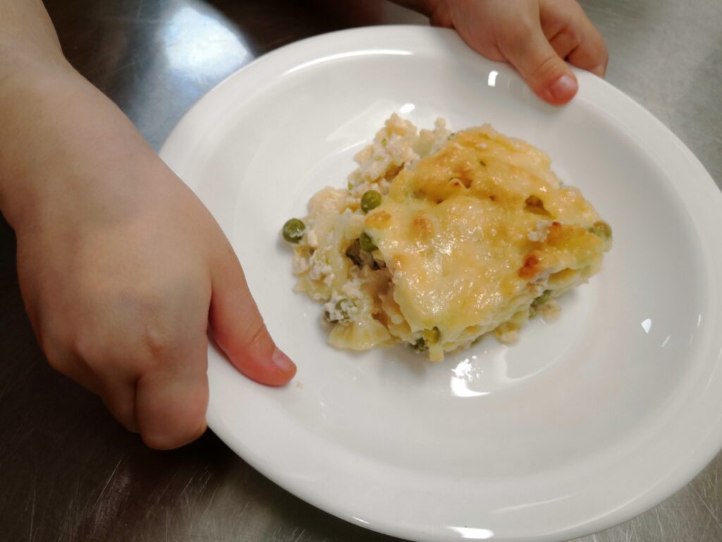 Zapečené těstoviny s kuřecím masem, hráškem a sýrem