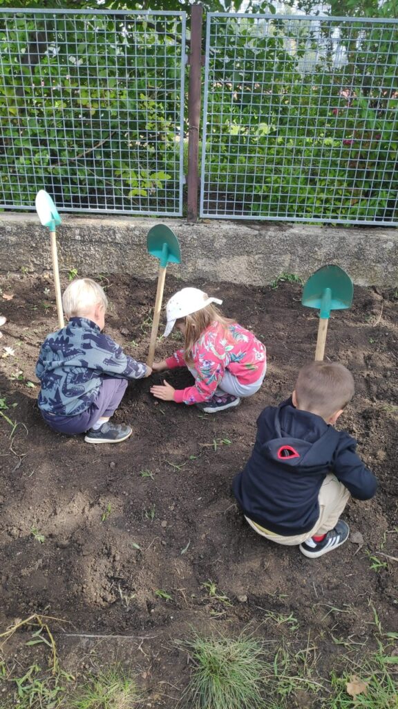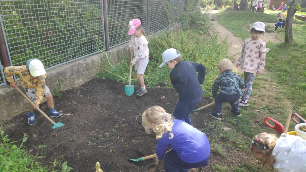 Na naší Bylinkové zahradě si děti z Modré třídy vlastnoručně vypěstovaly brambory a s velkým nadšením, pod vedením paní učitelek, si je samy vykopaly.