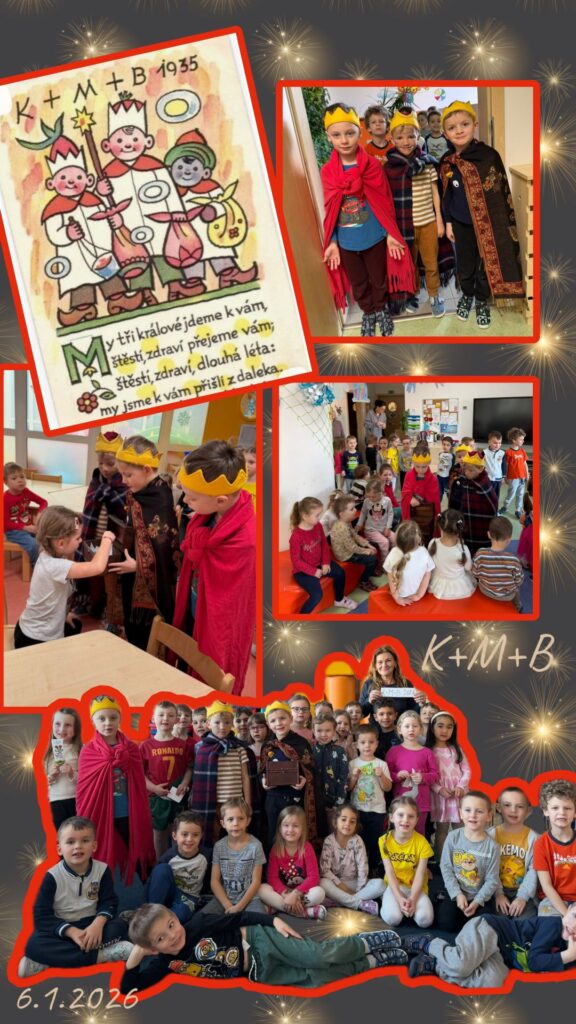 V den svátku prošel všemi třídami tříkrálový průvod. Letos se tohoto úkolu zhostily děti z červené třídy. V krásných kostýmech se nám představili Kašpar, Melichar a Baltazar, zazpívali písničku a nakonec nám všem popřáli šťastný nový rok.